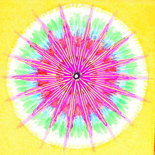 Bordered by mandalas of the 9 Depths ("The Dot" and "The Star I AM"), the Safety Energy Locks are painted life-size in the colors given by Mary Burmeister Each SEL is suspended in a field of the color of the Depth in which it comes into being.